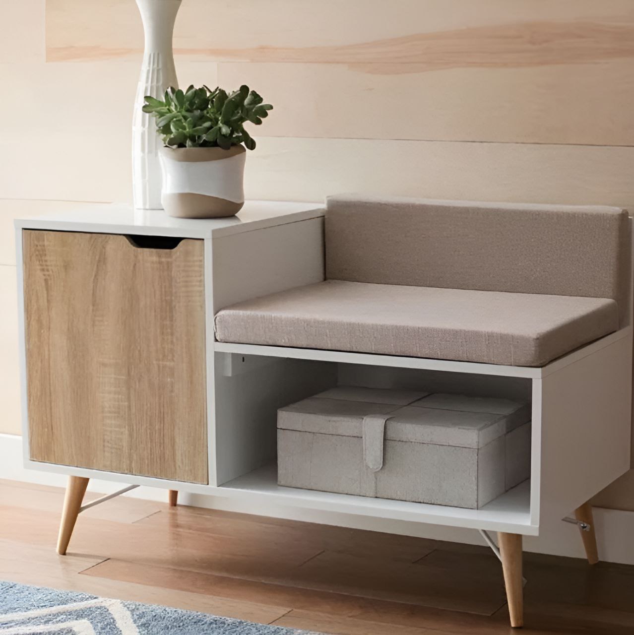 خزانة أحذية بيضاء وخشبية - ١٠٠ × ٤٠ × ٧٠ سم | SU63