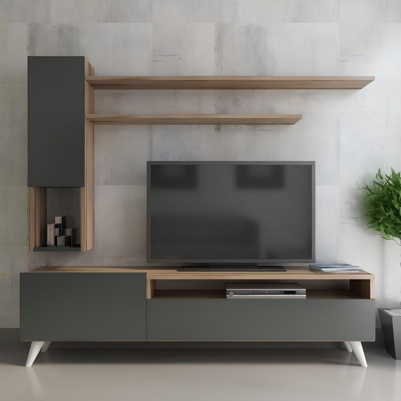 وحدة تلفزيون باللونين الأسود والخشبي - ١٦٠ × ٣٥ × ٤٠ سم | TV1